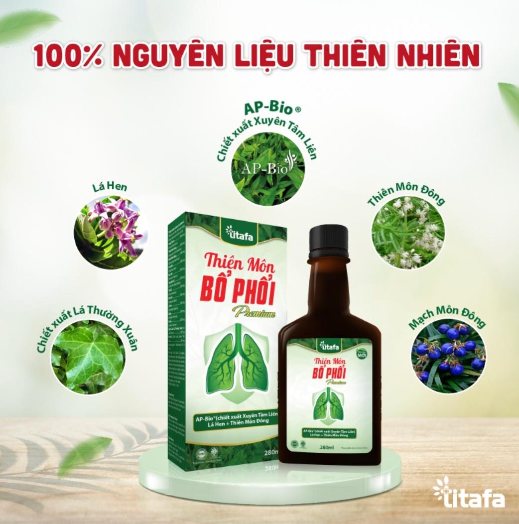 Sản phẩm chủ yếu chứa các thảo dược có tác dụng tại đường hô hấp như long đờm, giảm ho, nhuận phế, giảm viêm. Theo thông tin từ các nguồn review Thiên Môn Bổ Phổi Premium từ người dùng, sản phẩm được đánh giá là "siro ho không gây buồn ngủ", phù hợp cho người cần duy trì sự tỉnh táo trong ngày.