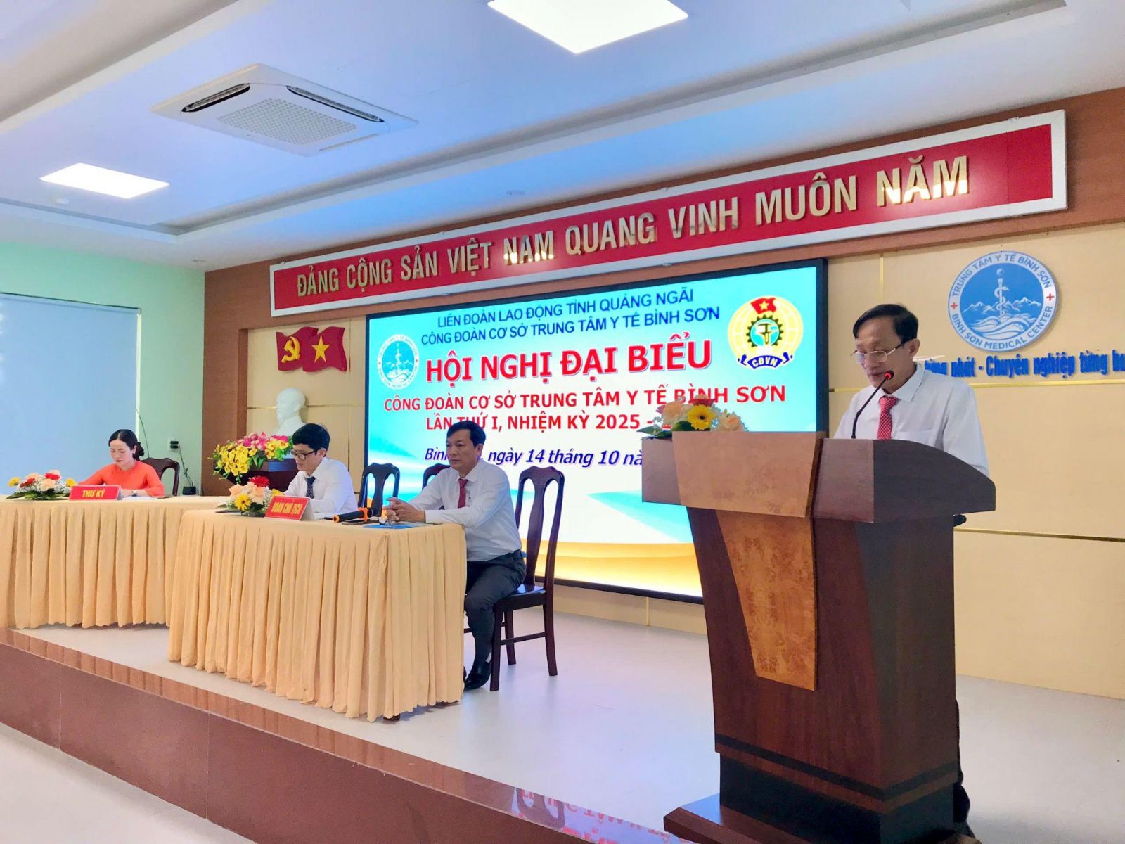 🎉 Chiều ngày 14/10/2025, Trung tâm Y tế Bình Sơn tổ chức Hội nghị đại biểu Công đoàn cơ sở lần thứ I, nhiệm kỳ 2025–2030. Đây là sự kiện có ý nghĩa đặc biệt quan trọng, đánh dấu bước phát triển mới trong công tác công đoàn và phong trào viên chức – người lao động tại Trung tâm.